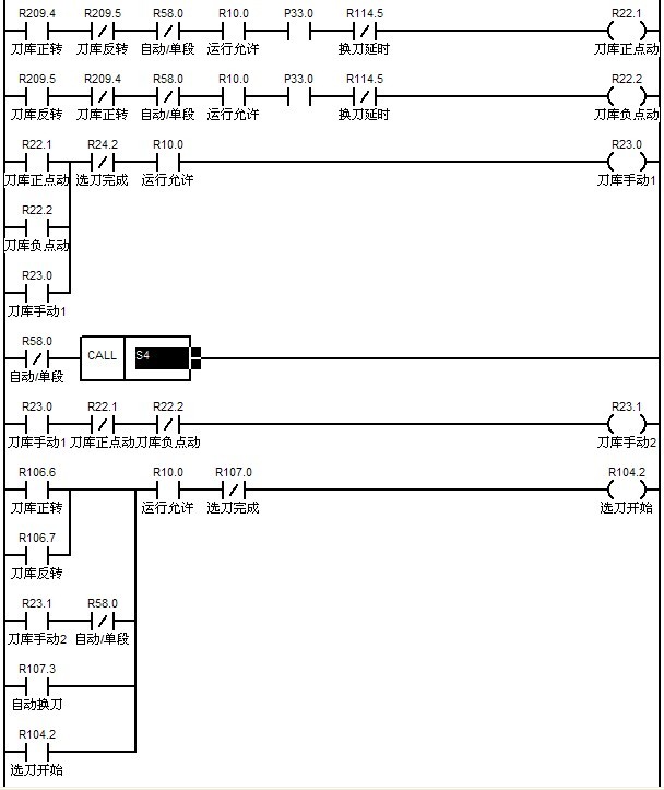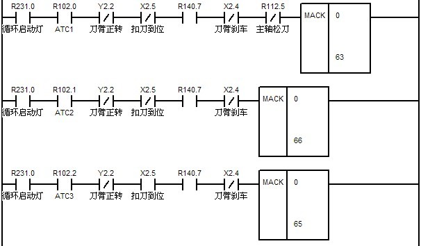 ????? M34的實現與M33類似,通過檢查F寄存器0組第8,9,10,11位可以檢查預設定的機床第二,三,四,五參考點。另外也可以根據需要寫出相似的代碼用來檢查每個運動軸的參考點。