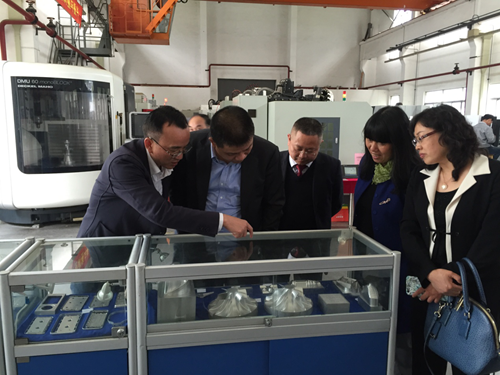 【大】 【中】 【小】4月7日,機械工業教育發展中心主任陳曉明、副主任鄭麗梅一行前往武漢華中數控股份有限公司進行調研,考察了中試車間、自動化立體倉庫、生產車間及展廳,聽取了熊清平副總裁前沿技術講解。陳曉明主任表示在對該公司進行深度了解后更加明確了未來的合作方向和前景。