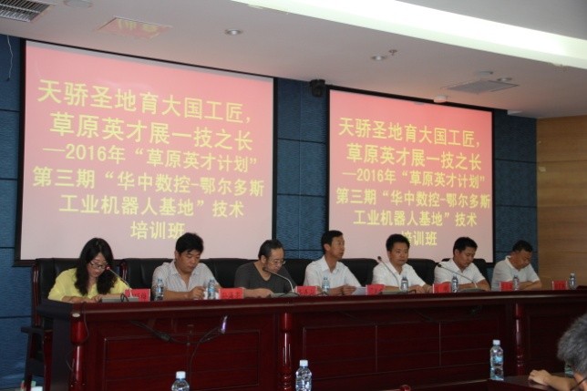 “天驕?zhǔn)サ赜髧そ常菰⒉耪挂患贾L。”7月25日-8月4日,華中數(shù)控與鄂爾多斯職業(yè)學(xué)院合辦的“2016草原英才計劃”——工業(yè)機器人培訓(xùn)班在內(nèi)蒙古鄂爾多斯職業(yè)院校成功舉辦。來自廣州工程技術(shù)職業(yè)學(xué)院、河北工業(yè)職業(yè)技術(shù)學(xué)院、武漢軟件工程職業(yè)學(xué)院、福建工業(yè)學(xué)校、衡水學(xué)院、遼寧建筑職業(yè)學(xué)院等近20所院校的四十余名教師參加了本次培訓(xùn),普遍反映收獲很大,感謝華中數(shù)控和鄂爾多斯職業(yè)學(xué)院共同提供了很好的學(xué)習(xí)平臺,針對工業(yè)機器人的教學(xué)和實訓(xùn),大家共同研討、共同學(xué)習(xí)。培訓(xùn)期間,各位老師對鄂爾多斯這塊神奇的地方、天驕?zhǔn)サ亓粝律羁逃∠螅惺艿絻?nèi)蒙古獨特的文化魅力和自然風(fēng)景。