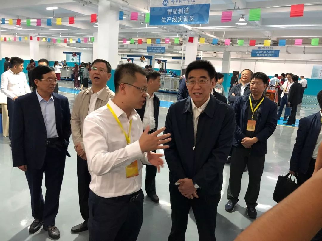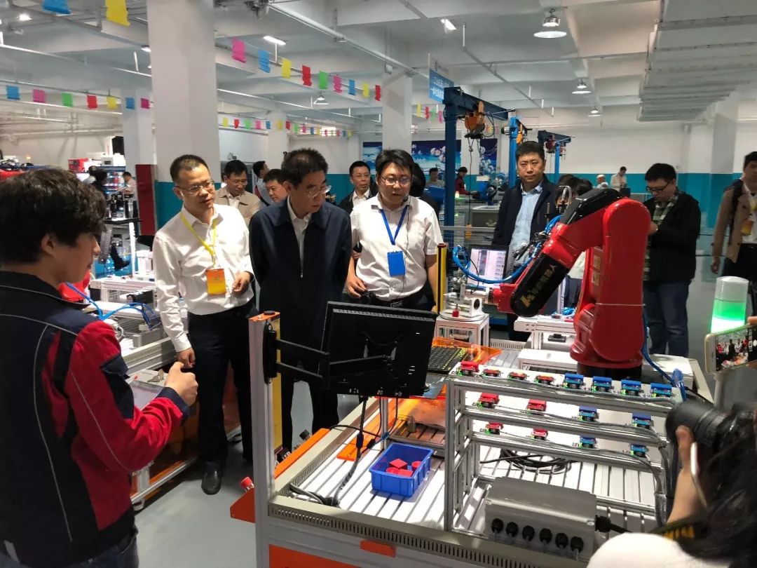 ????? 會議期間,與會領導和嘉賓參觀了華中數控智能制造產教融合示范基地。領導對實訓基地給予了高度評價,希望華中數控繼續加強和技工院校的校企合作,共同培養智能制造技能人才。