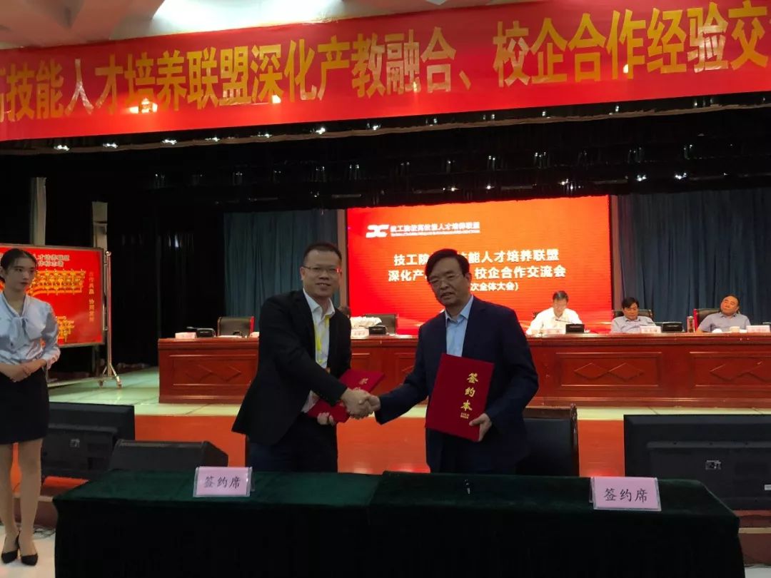 ????? 會上,華中數控總裁與聯盟理事長、邢臺技師學院院長荀鳳元簽訂了聯盟戰略合作協議。華中數控作為技工院校高技能人才培養聯盟智能制造產業校企合作集團牽頭企業,將聯合有關行業企業和技工院校,共同在智能制造、工業機器人、數控技術等領域開展校企合作,產教融合,共同培養智能制造技能人才。