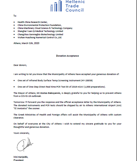 當前,新冠肺炎疫情正在全球多個國家蔓延擴散。截止3月20日,希臘共和國累計確診新冠肺炎病例增加到近500例。面對新冠疫情快速蔓延,希臘共和國總理米佐塔基斯稱“希臘處于戰(zhàn)爭狀態(tài),但我們必將獲勝”。他強調(diào)當前希臘政府的首要任務(wù)是“挽救生命”,希臘共和國政府已經(jīng)出臺一系列措施進行防疫抗疫。3月20日,在中華環(huán)境保護基金會的協(xié)調(diào)下,武漢華中數(shù)控股份有限公司(簡稱華中數(shù)控)通過希臘共和國駐中華人民共和國大使館,向希臘共和國捐贈一臺HY-2005B紅外智能測溫儀,支援希臘共和國政府開展防疫抗疫工作。為此,雅典市市長專門發(fā)來感謝信,感謝華中數(shù)控為希臘疫情防控提供幫助,據(jù)悉,本次捐贈的紅外智能測溫儀將用于雅典國際機場海關(guān)旅客的體溫檢測。