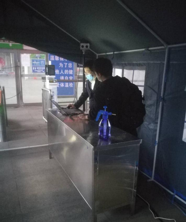 ?抵達現場后,華中數控裝備部張文超和客服部陳星兩位工程師、李恒普等一起投入到設備的安裝調試之中。凌晨3點左右,第一套部署在鄂州火車站出站口的華中數控2005B/E“紅外智能體溫檢測系統”安裝調試完成。