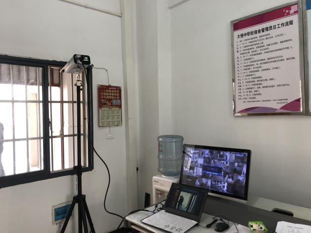 這幾天,大悟縣第一中學(xué)、大悟縣中等職業(yè)技術(shù)學(xué)院兩所學(xué)校都可以看到一個“黑科技”:一個紅外攝像頭,一臺筆記本。從攝像頭走過的人,都會被拍進筆記本顯示屏中,同時,人像的頭部會出現(xiàn)測量的體溫數(shù)據(jù)。?