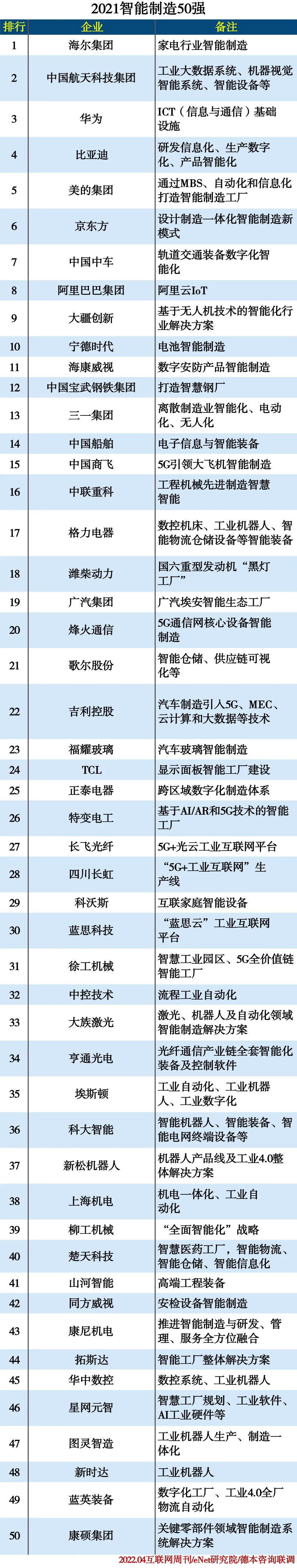 4月6日,《互聯(lián)網(wǎng)周刊》聯(lián)合eNET研究院、德本咨詢發(fā)布了“2021智能制造50強(qiáng)”排行榜,華中數(shù)控以數(shù)控系統(tǒng)、工業(yè)機(jī)器人領(lǐng)域的領(lǐng)先實(shí)力入選該榜單。同時(shí)列入該榜單的還有中國(guó)航天科技集團(tuán)、華為、比亞迪、美的集團(tuán)、京東方、中...