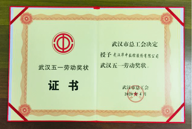 武漢華中數(shù)控股份有限公司榮獲2020年武漢市五一勞動(dòng)獎(jiǎng)狀