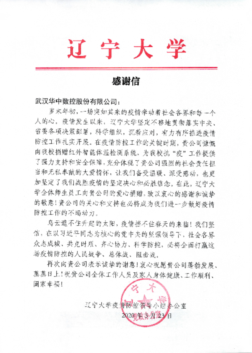 國務(wù)院點名表揚!國務(wù)院聯(lián)防聯(lián)控機(jī)制給華中數(shù)控發(fā)來感謝信